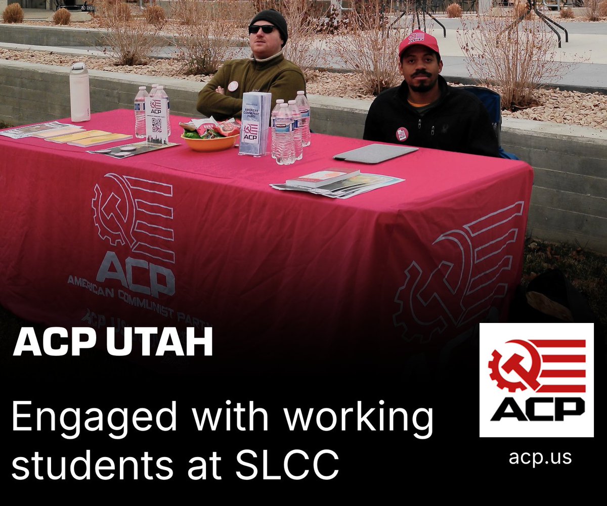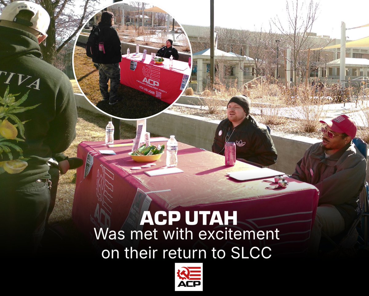 ACP Utah spent the afternoon tabling at BYU and witnessed something incredible: the wall of cynicism cracking. Students are hungry for a strategy that goes beyond voting. You could see the mental shift when we started talking about the ACP's role in organizing the working class,